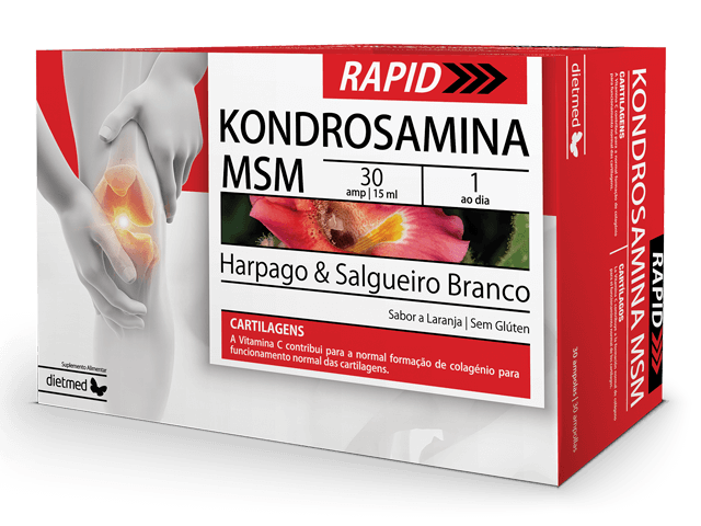 Por 1 ampola: Sulfato de Glucosamina 750 mg, Sulfato de Condroitina 600 mg, MSM 375 mg, Extrato de Harpago 150 mg, Extrato de Salgueiro Branco 150 mg, Vitamina C 80 mg (100% VRN*). * Valor de Referência do Nutriente.