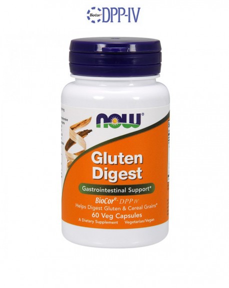 Suporta o Sistema Digestivo. Com BioCore® DPP IV, mistura de enzimas proteolíticas formulada para promover a completa digestão dos grãos de cereais que contêm glúten (trigo, cevada e centeio). Com proteases, amilases e glucoamilases, que ajudam na digestão de proteínas e hidratos de carbono, impedindo que as partículas de glúten cheguem ao intestino delgado. Benéfico na Sensibilidade ao Glúten. Fórmula Vegetariana / Vegan. Sem OGM.